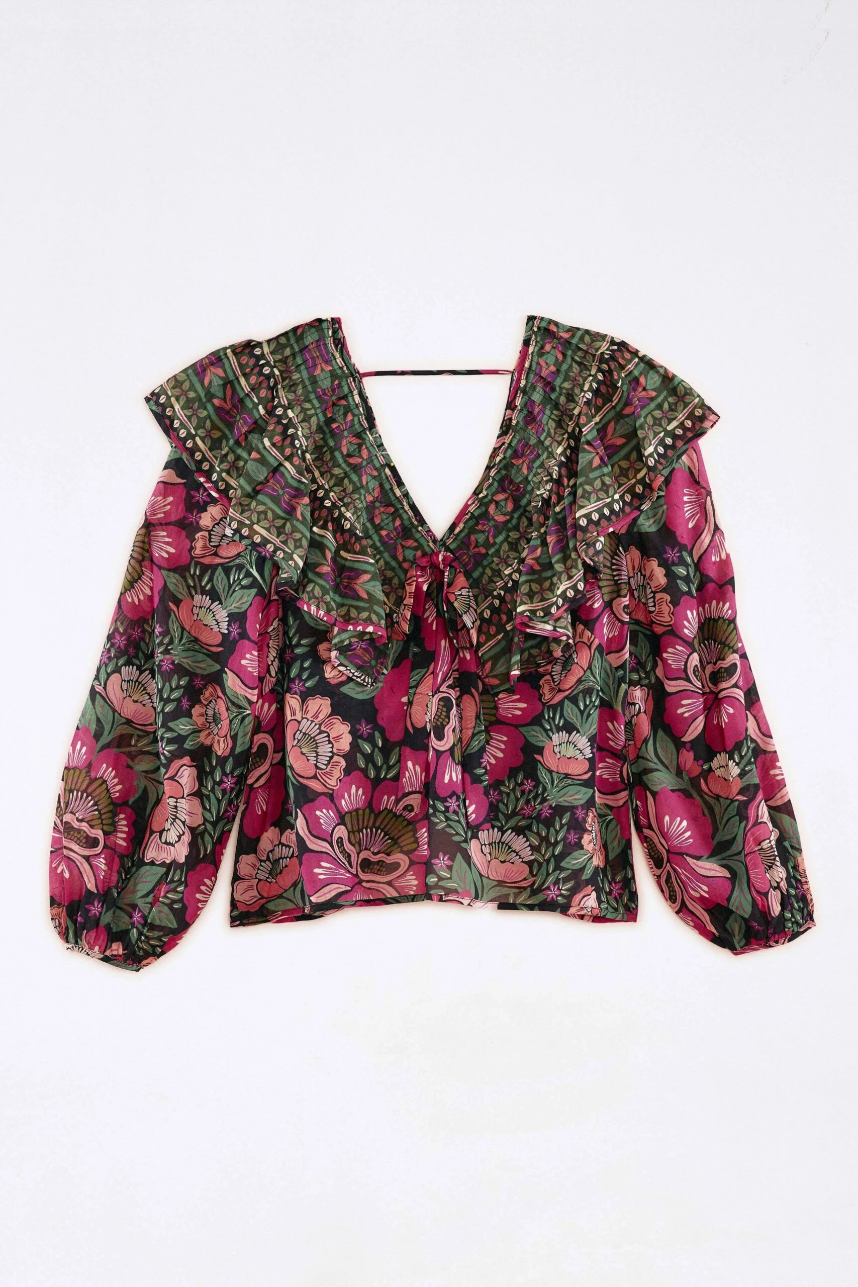 - V neck with ties and ruffles