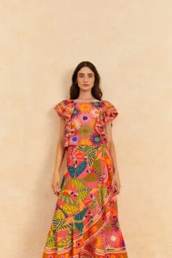 We can definitely call it a bright classic: the Black Chevron Forest Lenzing™ Ecovero™ Viscose Maxi Dress is here to be a timeless pick in your wardrobe. It has a flowy fit with long sleeves to deal with the breeze and a print with all the nature-inspired elements you love. So invite far-from-ordinary FARM Rio Shoes and accessories to make a bold impression all around 🙂